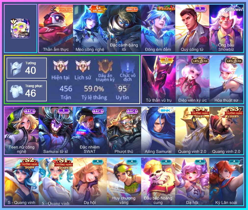 Arthur Đặc cảnh băng lôi, Krixi Phó văn nghệ, Telannas Dạ hội, Valhein Hoàng tử Quạ, Butterfly Teen Nữ Công Nghệ, Triệu Vân Quý Công Tử, Violet Huy Chương Vàng, Zuka Đầu bếp hoàng cung, Điêu Thuyền Mèo công nghệ, Raz Đại tù trưởng, Grakk Thần ẩm thực, Richter Quang vinh 2.0, Richter Cứu hộ, Alice Dạ hội, Bright Kỳ Lân Soái, Yorn Đặc Nhiệm Swat, Max Tiểu King Kong, Gildur phượt thủ, Gildur Đại gia học viện, Amily Nữ đội trưởng, Maloch Samurai Tử Sĩ, Maloch Ác nhân vô tuyến, Maloch Đại ca Mukbang, Quillen Trưởng ngoại khoa, Zill Thần mộng mị, Azzenka Quang Vinh 2.0, Roxie Hỏa thuật sư, Aya Điệp viên ký ức, Kriknak Bọ Cánh Bạc, Zephys Đầu bếp Sashimi, Enzo Leo núi, Hayate Tử thần vũ trụ, Skud Mafia, Tulen Đông êm đềm, Tulen Dạ hội, Dirak Ông bầu Showbiz, Slimz Lẩu chua cay, Murad Thợ Săn Tiền Thưởng, Capheny S-Quang Vinh, Dextra Lữ khách cao nguyên, Yena Nữ hoàng thể thao, Keera Hồ điệp, Sephera Thủy Liên Hoa, Xeniel Shipper bánh mỳ, Celica S-Quang Vinh, Ryoma Ailing Samurai