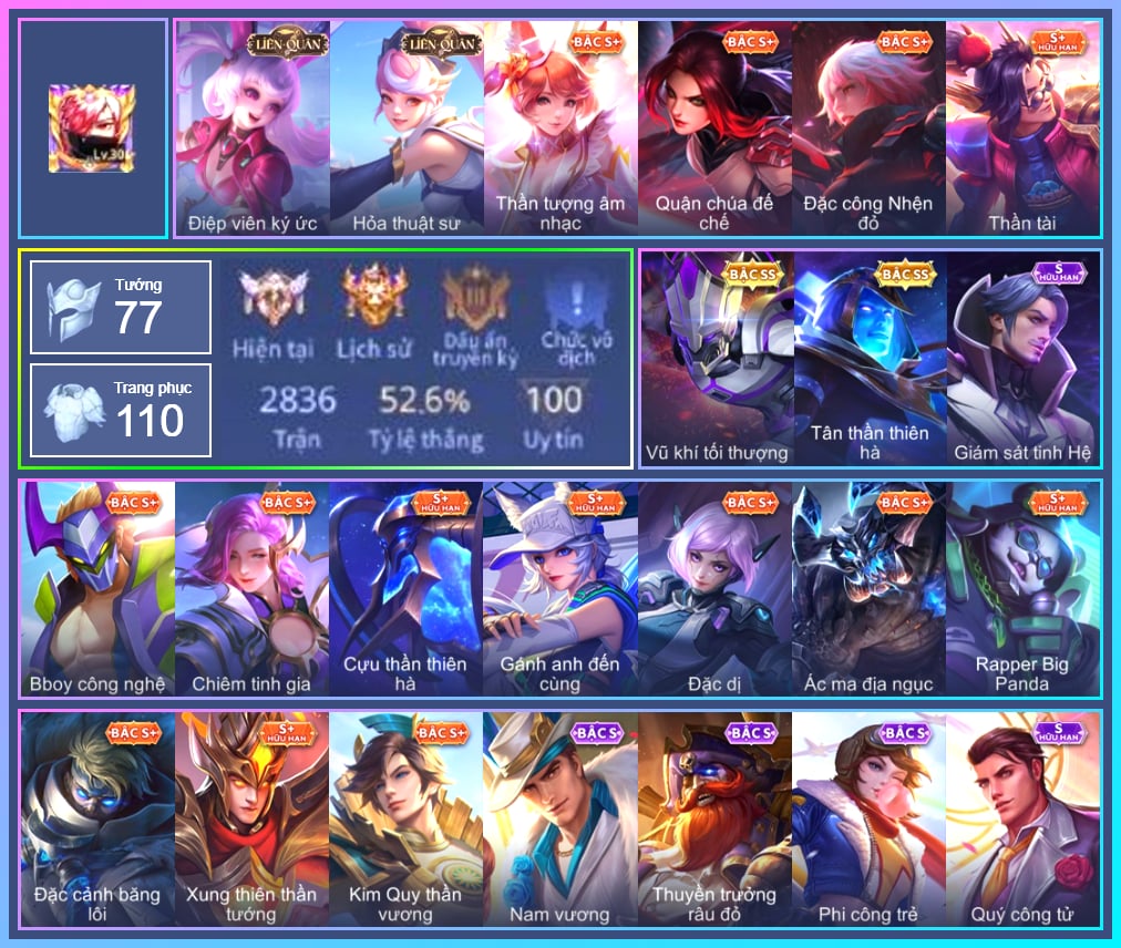 TelAnnas Giám thị thân thiện, Telannas Dạ hội, TelAnnas Quang Vinh, Valhein Hoàng tử Quạ, Valhein Vũ khí tối thượng, Valhein S-Quang Vinh, Arthur Đặc cảnh băng lôi, Butterfly Quận Chúa Đế Chế, Butterfly Gánh anh đến cùng, Violet Phi Công Trẻ, Violet Huy Chương Vàng, Natalya Phó nháy nhí nhảnh, Krixi Thần Thoại Hy Lạp, Krixi Thuỷ Thủ, Triệu Vân Quý Công Tử, Triệu Vân Cẩm y vệ_ Hỏa Long, Maloch Samurai Tử Sĩ, Alice Xứ sở thần tiên, Alice Dạ hội, Stuart Vua hề, Mina Đào tạo siêu sao, Grakk Thần ẩm thực, Yorn Đặc Nhiệm Swat, Sephera Chiêm tinh gia, Kaine Người dơi, Roxie Lễ hội hoa, Roxie Hỏa thuật sư, Zuka Rapper Big Panda, Aya Điệp viên ký ức, Dextra Lữ khách cao nguyên, Raz Đại tù trưởng, Errol Stream đến bao giờ, Amily Đặc công nhện đỏ, Amily Nữ đội trưởng, Hayate Bạch lang, Zill Thần mộng mị, Tulen Phù Thủy Kiến Tạo, Airi Thích Khách, Gildur phượt thủ, Zephys Tư lệnh viễn chinh, Zephys Inosuke Hashibira, Zephys Đầu bếp Sashimi, Lauriel Nữ vương học đường 2, Murad S-Quang Vinh, Quillen Sao đỏ học đường, Rouie Quang Vinh, Lindis Quang thánh tiễn, Elsu Mafia, Kriknak Bọ Cánh Bạc, Mganga Pháp sư mèo, Enzo Thần thoại Hy Lạp, Arduin, Arduin Tà linh hiệp sỹ, Fennik Nhà thám hiểm, Fennik Đội đặc nhiệm, Richter Quang vinh 2.0, Azzenka Quang Vinh 2.0, Slimz Sứ giả Thiên giới, Annette Xứ sở thần tiên, Elandorr Học viện Carano, Capheny S-Quang Vinh