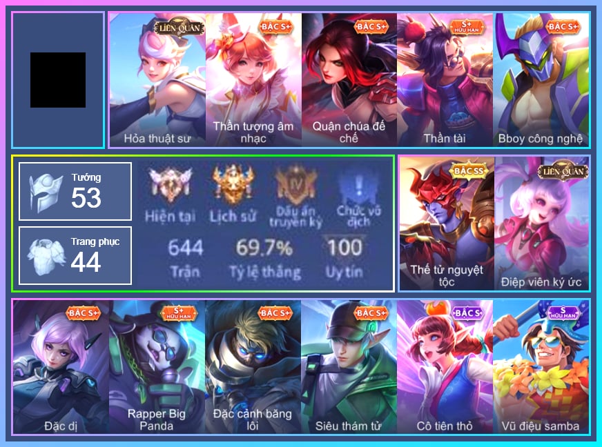 Valhein Hoàng tử Quạ, Valhein S-Quang Vinh, Triệu Vân Thần Tài, Krixi Tiệc Bãi Biển, Krixi Cô Tiên Thỏ, Krixi Thuỷ Thủ, Yorn Soái ca bãi biển, Liliana thần tượng âm nhạc, Liliana Thuỷ thủ hồ ly, Azzenka Quang Vinh 2.0, Natalya Quý Cô Thủy Tề, Natalya Quà Quái Quỷ, Mganga Pháp sư mèo, Grakk Thuyền Trưởng Râu Đỏ, Grakk Thần ẩm thực, Butterfly Teen Nữ Công Nghệ, Butterfly Gánh anh đến cùng, Gildur Đại gia học viện, Veera Goá Phụ, Veera Thiên nga đen, Kahlii Siêu đầu bếp, Skud Sơn Tặc, Teemee Thịt xiên nướng, Annette Nữ quản ga, Maloch Ác Ma Địa Ngục, Maloch Samurai Tử Sĩ, Maloch Đại ca Mukbang, Telannas Dạ hội, TelAnnas Quang Vinh, Lauriel Đọa Lạc Thiên Sứ, Lauriel Hỏa Phượng Hoàng, Lauriel Thánh quang sứ, Lauriel Phi thiên, Lauriel Nữ vương học đường 2, Yena Hoạt náo viên, Yena Nữ hoàng thể thao, Zephys Inosuke Hashibira, Keera Y tá lạ, Keera Học viên Carano, Keera Nghệ sĩ Graffiti, Arduin, Arduin Tà linh hiệp sỹ, Amily Đặc công nhện đỏ, Violet Đặc Dị, Violet Thần long tỷ tỷ, Aya Hoạt náo viên, Aya Điệp viên ký ức, Aya Thủy thủ, Zip Cá siêu quậy, Qi Thiếu nữ pháo hoa, Qi Blogger Ẩm thực, Celica Nữ cao bồi, Celica Tâm hồn trà sữa, Sephera Phi vụ thế kỷ, Sephera Thủy Liên Hoa, Điêu Thuyền Nữ Vương Anh Đào, Điêu Thuyền Hoa Hậu, Yue Tiểu công Chúa, Veres Đạo tặc, Roxie Hầu gái, Roxie Lễ hội hoa, Roxie Hỏa thuật sư, Alice Bé Gấu Tuyết, Alice Xứ sở thần tiên, Alice Dạ hội, Alice The Butterfly Mansion Girl, Capheny Hầu gái, Enzo Phẩm chất quý tộc, Enzo Thần thoại Hy Lạp, Taara Hồng môn đường chủ, Zata Tư lệnh viễn chinh, Rouie Sứ giả vũ trụ, Rouie Quang Vinh, Hayate Bạch lang, Bright Kỳ Lân Soái, Zuka Đầu bếp hoàng cung, Zuka Rapper Big Panda, Kaine Đôi Cánh Đại Dương, Kaine Người dơi, Ishar Giấc Mơ Ngọt Ngào, Slimz Sứ giả Thiên giới, Arum Thú Vệ Cổ Mộ, Fennik Nhà thám hiểm, Fennik Đội đặc nhiệm, Ilumia Diva nổi loạn, Ilumia Ngược dòng thời gian, Errol Stream đến bao giờ, Murad S-Quang Vinh, Elandorr Soái tặc, Ormarr Cựu chiến binh, Sinestrea Giấc mơ trưa, Sinestrea Lữ khách sa mạc, Tachi S-Vinh Quang, Richter Quang vinh 2.0, Airi Đặc công tử điệp, Dextra Lữ khách cao nguyên