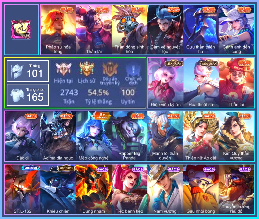 Valhein Hoàng tử Quạ, Valhein Khiêu chiến, Valhein Thần tài, Valhein Xạ Thần, Valhein S-Quang Vinh, Triệu Vân Quý Công Tử, Triệu Vân Thần Tài, Krixi Cô Tiên Thỏ, Krixi Thuỷ Thủ, Taara Đại tù trưởng, Taara Hỏa Ngọc Nữ Đế, Gildur phượt thủ, Gildur Đại gia học viện, Gildur Đại võ sư, Mina Tiểu thư đoạt hồn, Mina Tiệc Bánh Kẹo, Mina Đào tạo siêu sao, Veera Y Tá Bạo Loạn, Veera Thiên nga đen, Mganga Hề cung đình, Mganga Tiệc Bánh Kẹo, Kriknak Bọ Cánh Bạc, Kriknak ST.L-162, Azzenka Quang Vinh 2.0, TelAnnas Cảnh Vệ Rừng, Telannas Thánh nữ mật hội, Telannas Dạ hội, TelAnnas Quang Vinh, Violet Nữ đặc cảnh, Violet Đặc Dị, Violet Huy Chương Vàng, Ilumia Nữ Chúa Tuyết, Ilumia Thiên nữ áo dài, Ilumia Diva nổi loạn, Ilumia Ngược dòng thời gian, Cresht Thợ sửa cáp, Điêu Thuyền Nữ Vương Anh Đào, Điêu Thuyền Mèo công nghệ, Butterfly Teen Nữ Công Nghệ, Butterfly Gánh anh đến cùng, Zill Lốc Địa Ngục, Zill Dung nham, Zill Cựu thần thiên hà, Zill Thần mộng mị, Ignis Quang Vinh, Ignis Bắc băng vương, Tulen Nhà Thám Hiểm, Tulen Dạ hội, Raz Đại tù trưởng, Raz Mãnh lôi thần quyền, Raz MC Võ đài, Lữ Bố Nam Vương, Lữ Bố Vũ điệu Samba, Zuka Giáo Sư Sừng Sỏ, Zuka Gấu Nhồi Bông, Zuka Đầu bếp hoàng cung, Zuka Rapper Big Panda, Lindis Quang Vinh, Lindis Đồng phục Shihakusho, Lauriel Đọa Lạc Thiên Sứ, Lauriel Nữ vương học đường 2, Moren Anh thợ điện, Alice Xứ sở thần tiên, Alice The Butterfly Mansion Girl, Natalya Quý Cô Thủy Tề, Natalya Phó nháy nhí nhảnh, Annette Nữ quản ga, Amily Đặc cảnh NYPD, Lumburr, Jinna Hỏa nhãn ma vương, Aleister Thiếu Niên Hắc Ám, Aleister Quỷ soái nguyệt tộc, Slimz Thỏ Thợ Mỏ, Slimz Chú thỏ ngọc, Slimz Sứ giả Thiên giới, Kahlii Quàng Khăn Đỏ, Kahlii Siêu đầu bếp, Kahlii Tử điệp, Xeniel Thiên Sứ Hủy Diệt, Maloch Ác Ma Địa Ngục, Maloch Samurai Tử Sĩ, Maloch Ác nhân vô tuyến, Maloch Đại ca Mukbang, KilGroth Cảnh Vệ Biển, Arduin, Arduin Quang Vinh, Arduin Tà linh hiệp sỹ, Wisp Hải Tặc Nhí, Sephera Thủy Liên Hoa, Zephys Tư lệnh viễn chinh, Zephys Inosuke Hashibira, Zephys Đầu bếp Sashimi, Omega Người máy xanh, Grakk Thuyền Trưởng Râu Đỏ, Grakk Khô Lâu Đại Tướng, Hayate Bạch lang, Darcy Pháp sư hỏa long, Baldum chú thợ ống nước, Enzo Thần thoại Hy Lạp, Errol Stream đến bao giờ, Thane Kẻ Hủy Diệt, Thane Mật vụ, Max Hiệp Sĩ Nhí, Max Găng Tay Vàng, Max Quang Vinh, Max Thần đồng sinh hóa, Marja Linh Xà Tư Tế, Volkath Tư lệnh viễn chinh, Veres Chị đại học đường, Richter Bá tước, Richter Dạ hội, Richter Quang vinh 2.0, Florentino Vũ kiếm sư, Florentino Kiếm sĩ Olympic, Florentino Thần thoại Hy Lạp, Florentino Hisoka, Qi Thiếu nữ pháo hoa, Qi Blogger Ẩm thực, Zip Tiểu đệ hổ báo, Zip Cá siêu quậy, Yena Hoạt náo viên, Yena Nữ hoàng thể thao, Yena Nữ cướp biển, Murad Thợ Săn Tiền Thưởng, Murad Thiên Tài Sân Cỏ, Murad S-Quang Vinh, Rouie Quang Vinh, Teemee Tay đua siêu tốc, Omen Thuyền trưởng hải tặc, Preyta Không Tặc, Preyta Phi cơ F1, Paine khúc nhạc tử vong, Zata Tư lệnh viễn chinh, Arthur Hoàng kim cốt, Ryoma Đại Tướng Nguyệt Tộc, Dextra Chiến binh quyến rũ, Dextra Quý cô Tuổi Dần, Airi Thích Khách, Airi Ninja Xanh Lá, Airi Cấm Vệ Nguyệt Tộc, Airi Đặc công tử điệp, Fennik Nhà thám hiểm, Fennik Đội đặc nhiệm, Fennik Shipper Siêu thanh, Dirak Quý tộc, Dirak Đường chủ yêu giới, Liliana Thuỷ thủ hồ ly, Ata Quang vinh, Tachi Lãng khách, Thorne Cận vệ hoàng gia, Laville Tay đua đường phố, Laville Kim quy thần vương, Elsu Mafia, Bright Soái ca thánh điện, Ngộ Không Đạo tặc, Ngộ Không Cổ thần Ai Cập, Ybneth Hạt trưởng kiểm lâm, Roxie Hầu gái, Roxie Lễ hội hoa, Roxie Hỏa thuật sư, Yue Tiểu công Chúa, Aya Điệp viên ký ức, Sinestrea Giấc mơ trưa, Keera Học viên Carano, Keera Nghệ sĩ Graffiti