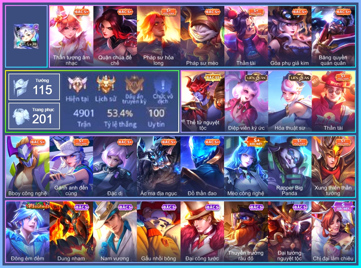 Valhein Hoàng tử Quạ, Valhein Vũ khí tối thượng, Valhein Quang Vinh, Valhein Thần tài, Valhein Xạ Thần, Valhein S-Quang Vinh, Triệu Vân Quý Công Tử, Triệu Vân Quang Vinh, Triệu Vân Thần Tài, Veera Thiên nga đen, Skud Sơn Tặc, Skud Quang Vinh, Toro Đặc cảnh NYPD, Toro Bạch mao Ngưu, Taara Hỏa Ngọc Nữ Đế, Ormarr Cựu chiến binh, Violet Nữ đặc cảnh, Violet Đặc Dị, Violet Tay Súng Siêu Phẩm, Violet Huy Chương Vàng, Zephys Oán linh, Zephys Phi thương, Zephys Tư lệnh viễn chinh, Zephys Inosuke Hashibira, Zephys Đầu bếp Sashimi, Chaugnar Ác Mộng Sinh Hóa, Chaugnar Quang Vinh, AzzenKa Linh Hồn Lữ Khách, Azzenka Quang Vinh 2.0, Preyta Không Tặc, Preyta Phi cơ F1, Nakroth Chiến Binh Hỏa Ngục, Nakroth Siêu Việt 1, Kaine Người dơi, Butterfly Teen Nữ Công Nghệ, Butterfly Quận Chúa Đế Chế, Butterfly Gánh anh đến cùng, Zuka Giáo Sư Sừng Sỏ, Zuka Phát Tài, Zuka Gấu Nhồi Bông, Zuka Đầu bếp hoàng cung, Zuka Rapper Big Panda, Điêu Thuyền Nữ Vương Anh Đào, Điêu Thuyền Tiệc bãi biển, Điêu Thuyền Nữ y tá, Điêu thuyền Vũ điệu nghê thường, Điêu Thuyền Mèo công nghệ, Airi Thích Khách, Airi Cấm Vệ Nguyệt Tộc, Airi Đặc công tử điệp, Natalya Quý Cô Thủy Tề, Omega Người máy xanh, Omega Hộ vệ ba bích, Krixi Cô Tiên Thỏ, Krixi Thuỷ Thủ, Lauriel Đọa Lạc Thiên Sứ, Lauriel Hỏa Phượng Hoàng, Yorn Cung thủ bóng đêm, Yorn Thế Tử Nguyệt Tộc, Yorn Long thần soái, Yorn Soái ca bãi biển, Gildur phượt thủ, Gildur Đại gia học viện, Thane Kẻ Hủy Diệt, Thane Mật vụ, Raz Đại tù trưởng, Raz Siêu việt, Raz Saitama Cosplay, Raz Mãnh lôi thần quyền, Ngộ Không Đạo tặc, Ngộ Không Siêu việt, Ngộ Không Đặc vụ băng hầu, Ngộ Không Nhóc tỳ bá đạo, Ngộ Không Cổ thần Ai Cập, Slimz Thỏ Thợ Mỏ, Slimz Xứ sở thần tiên, Slimz Lẩu chua cay, Slimz Sứ giả Thiên giới, Mganga Hề cung đình, Mganga Tiệc Bánh Kẹo, Mganga Pháp sư mèo, Grakk Thuyền Trưởng Râu Đỏ, Grakk Khô Lâu Đại Tướng, Grakk Màu cờ sắc áo, Arthur Hoàng kim cốt, Aleister Thiếu Niên Hắc Ám, Aleister Quang Vinh, Aleister siêu sao bóng rổ, Aleister Xứ sở thần tiên, Mina Chị đại lắm chiêu, Mina Tiệc Bánh Kẹo, Mina Đào tạo siêu sao, Lữ Bố Kỵ Sĩ Âm Phủ, Lữ Bố Vũ điệu Samba, Murad Thợ Săn Tiền Thưởng, Murad S-Quang Vinh, Fennik Nhà thám hiểm, Fennik Đội đặc nhiệm, Fennik Tiệc Bánh Kẹo, Fennik Tay đua F1, Fennik Shipper Siêu thanh, KilGroth Quang Vinh, Capheny Hầu gái, Moren Anh thợ điện, Ignis Hỏa Thuật Sư, Ignis Quang Vinh, Lindis Thám Tử Tư, Lindis Quang Vinh, Lindis Đồng phục Shihakusho, Arum Nữ hoàng gấu xám, Ilumia Nữ Chúa Tuyết, Ilumia Diva nổi loạn, Laville Tay đua đường phố, Lumburr, Wisp Hải Tặc Nhí, Wisp Ếch nhồi bông, Kahlii Kim cô giáo chủ, Kahlii Siêu đầu bếp, Dextra Chiến binh quyến rũ, Dextra Quý cô Tuổi Dần, Florentino Vũ kiếm sư, Florentino Thần thoại Hy Lạp, Zill Diệt nguyệt tử sĩ, Zill Thần mộng mị, Celica Nữ cao bồi, Celica Tâm hồn trà sữa, Zip Cá siêu quậy, Volkath Dạ Huyết Tộc, Volkath Tư lệnh viễn chinh, Richter Dạ hội, Richter Quang vinh 2.0, Zata Tư lệnh viễn chinh, Elandorr Soái tặc, Stuart Trò đùa tử vong, Stuart Gã hề, Hayate Bạch ảnh, Hayate Quỷ diện, Hayate Bạch lang, Kriknak Bọ Cánh Bạc, Arduin, Arduin Tà linh hiệp sỹ, Alice Xứ sở thần tiên, Alice Dạ hội, Alice The Butterfly Mansion Girl, Veres Chị đại học đường, Jinna Hỏa nhãn ma vương, Ryoma Đại Tướng Nguyệt Tộc, Ryoma Dạ hội, Maloch Ác Ma Địa Ngục, Maloch Ác nhân vô tuyến, Maloch Đại ca Mukbang, TelAnnas Cảnh Vệ Rừng, TelAnnas Giám thị thân thiện, TelAnnas Quang Vinh, Dirak Quý tộc, Dirak Ông bầu Showbiz, Qi Thiếu nữ pháo hoa, Qi Blogger Ẩm thực, Elsu Cảnh vệ thảo nguyên, Elsu Mafia, Elsu Tuyết ưng, Elsu Xạ thủ tinh linh, Enzo Phẩm chất quý tộc, Enzo Thần thoại Hy Lạp, Enzo Nhà Leo núi, Ata Quang vinh, Ata Mèo đi mưa, Tachi Lãng khách, Yena Hoạt náo viên, Yena Nữ cướp biển, Keera Học viên Carano, Keera Thuỷ thủ, Tulen Phù Thủy Kiến Tạo, Tulen Dạ hội, Bright Soái ca thánh điện, Bright Kỳ Lân Soái, Quillen Trưởng ngoại khoa, Quillen Tà linh ma đao, Aya Điệp viên ký ức, Amily Đặc công nhện đỏ, Amily Hội ám hoàng, Sinestrea Giấc mơ trưa, Sinestrea Lữ khách sa mạc, Xeniel Thiên Sứ Hủy Diệt, Liliana thần tượng âm nhạc, Liliana Thuỷ thủ hồ ly, Omen Ám tử đao, Roxie Lễ hội hoa, Roxie Hỏa thuật sư, Rourke Pháo Thủ Tuộc Neo, Rourke Cuồng tặc, Rouie Quang Vinh, Baldum chú thợ ống nước|CÁC SKIN SS: Valhein Vũ khí tối thượng, Điêu Thuyền Tiệc bãi biển, Yorn Thế Tử Nguyệt Tộc, Yorn Long thần soái, Raz Siêu việt, Ngộ Không Siêu việt