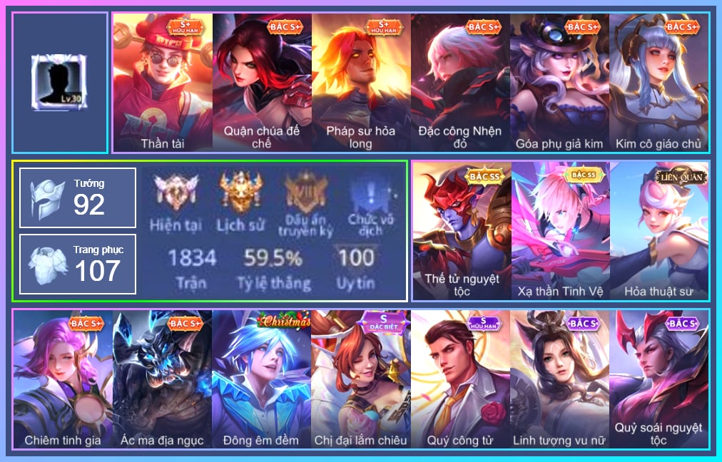 Valhein Hoàng tử Quạ, Valhein Số 7 Thần Sầu, Valhein Thần tài, Valhein Xạ Thần, Valhein S-Quang Vinh, Triệu Vân Quý Công Tử, Krixi Thuỷ Thủ, Grakk Màu cờ sắc áo, Butterfly Quận Chúa Đế Chế, Maloch Ác Ma Địa Ngục, Mina Chị đại lắm chiêu, Mina Đào tạo siêu sao, Annette Xứ sở thần tiên, Preyta Không Tặc, Thane Mật vụ, Gildur phượt thủ, Gildur Đại võ sư, Kahlii Kim cô giáo chủ, Kahlii Siêu đầu bếp, Sinestrea Lữ khách sa mạc, Dextra Quý cô Tuổi Dần, Ata Quang vinh, Ata Mèo đi mưa, Lumburr, Arduin, Taara Hỏa Ngọc Nữ Đế, Alice Xứ sở thần tiên, Alice The Butterfly Mansion Girl, Amily Đặc cảnh NYPD, Amily Đặc công nhện đỏ, Amily Hội ám hoàng, Lindis Thám Tử Tư, Veera Goá Phụ, Keera Y tá lạ, Keera Thuỷ thủ, Raz Đại tù trưởng, Raz Saitama Cosplay, Yorn Thế Tử Nguyệt Tộc, Zephys Phi thương, Zephys Inosuke Hashibira, Capheny Hầu gái, Zuka Đầu bếp hoàng cung, Zata Tư lệnh viễn chinh, KilGroth Cảnh Vệ Biển, Natalya Quý Cô Thủy Tề, Elsu Mafia, Elsu Tuyết ưng, TelAnnas Cảnh Vệ Rừng, Telannas Dạ hội, TelAnnas Quang Vinh, Zill Thần mộng mị, Volkath Tư lệnh viễn chinh, Violet Nữ đặc cảnh, Violet Huy Chương Vàng, Veres Đạo tặc, Veres Chị đại học đường, Laville Tay đua đường phố, Laville Xạ Thần Tinh Vệ, Dirak Cảnh Vệ Bầu Trời, Dirak Ông bầu Showbiz, Dirak Đường chủ yêu giới, Moren Anh thợ điện, Richter Bá tước, Richter Dạ hội, Richter Quang vinh 2.0, Marja Linh Xà Tư Tế, Airi Thích Khách, Arum Linh tượng vu nữ, Arum Nữ hoàng gấu xám, Tulen Phù Thủy Kiến Tạo, Tulen Đông êm đềm, Aleister Quỷ soái nguyệt tộc, Điêu Thuyền Nữ y tá, Qi Thiếu nữ pháo hoa, Qi Blogger Ẩm thực, Omega Người máy xanh, Omega Hộ vệ ba bích, Enzo Thần thoại Hy Lạp, Enzo Nhà Leo núi, Hayate Bạch lang, Astrid Bạch Kiếm Tiểu Thư, Zip Cá siêu quậy, Xeniel Thiên Sứ Hủy Diệt, Sephera Quý tiểu thư, Sephera Chiêm tinh gia, Liliana Thuỷ thủ hồ ly, Roxie Lễ hội hoa, Roxie Hỏa thuật sư, Wonder Woman Thế Chiến, Ilumia Nữ Chúa Tuyết, Ilumia Diva nổi loạn, Elandorr Học viện Carano, Lorion Chiến giáp hắc ám, Omen Thuyền trưởng hải tặc, Murad Thợ Săn Tiền Thưởng, Fennik Shipper Siêu thanh, Lauriel Đọa Lạc Thiên Sứ, Lauriel Nữ vương học đường 2, Stuart Trò đùa tử vong, Stuart Gã hề, Rouie Quang Vinh, Thorne Cận vệ hoàng gia, Celica Nữ cao bồi, Darcy Pháp sư hỏa long, Max Găng Tay Vàng, Arthur Siêu sao Cricket, Azzenka Quang Vinh 2.0